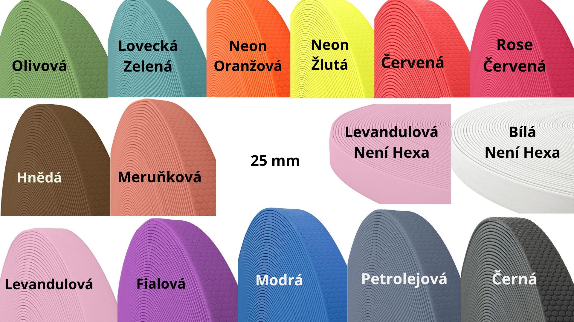 Obojek je vyroben z voděodolného popruhu šířky 25 mm, který má oboustrannou strukturu ve tvaru včelí plástve (hexa vzor). Jádro popruhu tvoří PVC tkanina, na kterou je nanesena vrstva termoplastického polyuretanu (TPU).